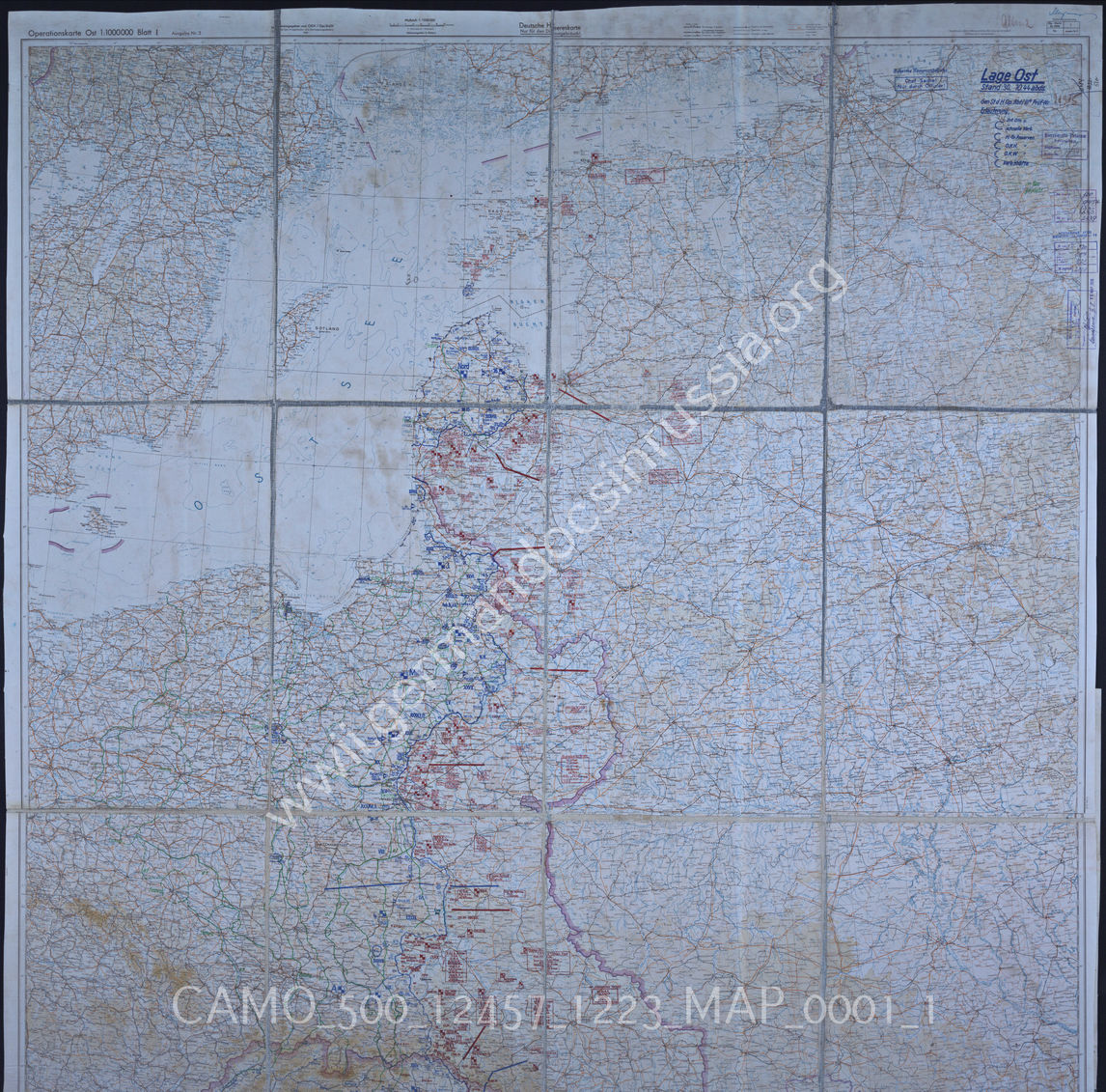 Akte 1223: Unterlagen der Operationsabteilung IIIb des Generalstabs des Heeres im OKH: Karte „Lage Ost“ – Karte zur Lage der Truppen der Wehrmacht an der deutsch-sowjetischen Front, einschließlich der Lage der Verbände der Roten Armee, Stand 30.10.1944