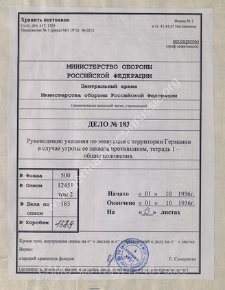 Top CAMO - Bestand 500 Findbuch 12451, Bd. 2 - Oberkommando des Heeres (OKH), 1919-1945 Akte 183: Richtlinien für die Räumung feindbedrohten Reichsgebiets,...