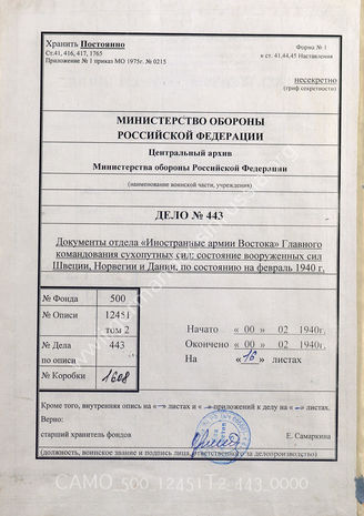 Akte 443: Unterlagen der Abteilung Fremde Heere Ost (IIb) beim Generalstab des Heeres im OKH: Die Wehrmacht Schwedens, Norwegens und Dänemarks (Stand Februar 1940) – ohne Anlagen