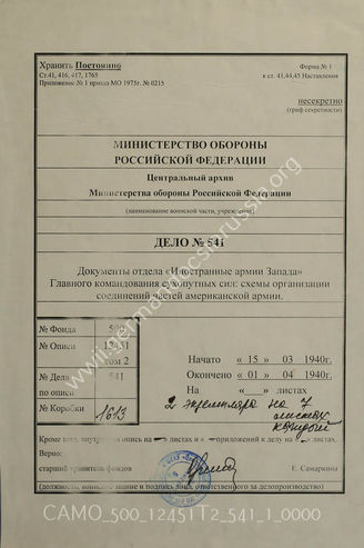 Akte 541: Unterlagen der Abteilung Fremde Heere West (III) beim Generalstab des Heeres im OKH: Gliederungsschemata und Kartenskizzen zur Ausarbeitung - Kurze Zusammenstellung über das Heer der Vereinigten Staaten von Nordamerika