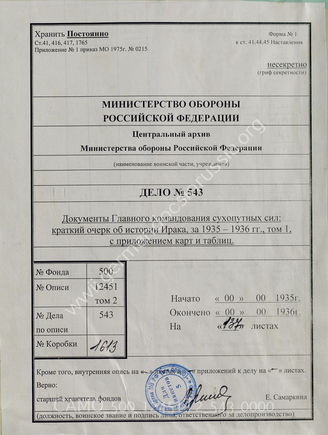 Akte 543: Unterlagen der Gruppe VIII e (Wehrauswertung) im Amt Ausland/Abwehr im OKW: Übersetzung des Military Report on Iraq 1935/36, Dienstschrift des britischen Luftfahrtministeriums, Bd. I (Allgemeines), Berlin 1942