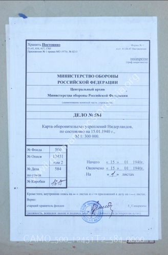 Akte 584: Unterlagen der Abteilung Fremde Heere West beim Generalstab des Heeres im OKH: Karte – Niederländische Befestigungen, M 1:300.000, Stand 15. Januar 1940