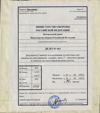 Akte 663: D 98/3* – Waffen des Auslandes, Teil 3: Infanteriewaffen und schwere Infanterie-Begleitwaffen, vom 1. Februar 1937, Berlin 1937