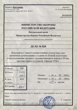 Akte 828: H.Dv. 1a, Anhang Nr. 2 – Vorläufige Richtlinien für Ausbildung und Einsatz des (mittleren) Panzerjäger-Zuges Pak 38 (5 cm) (mot. Z.), vom 18. März 1941, Berlin 1941
