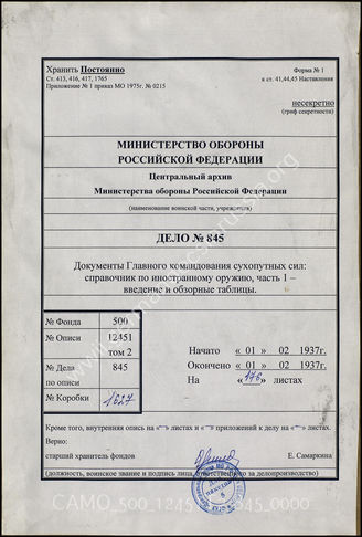 Top CAMO - Bestand 500 Findbuch 12451, Bd. 2 - Oberkommando des Heeres (OKH), 1919-1945 Akte 845: D 98/1* – Waffen des Auslandes, Teil 1: Einführung, Anhan...