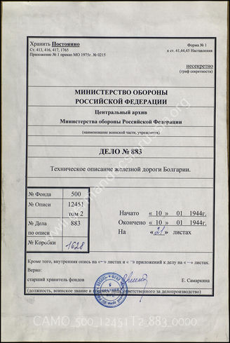 Top CAMO - Bestand 500 Findbuch 12451, Bd. 2 - Oberkommando des Heeres (OKH), 1919-1945 Akte 883: Unterlagen des Generals des Transportwesens Südost: Strec...