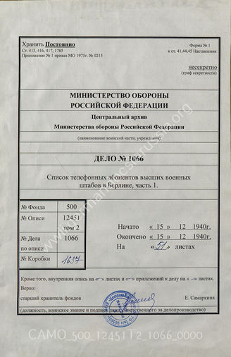 Akte 1066: Unterlagen der Inspektion der Nachrichtentruppen (Jn 7 III) im Allgemeinen Heeresamt beim Chef Heeresrüstung und Befehlshaber des Ersatzheeres im OKH: Wehrmacht-Fernsprechverzeichnis Groß-Berlin, Teil 1, Stand 15. Dezember 1940
