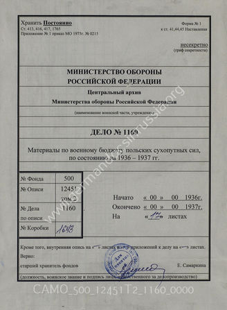 Akte 1160: Unterlagen der Abteilung Fremde Heere Ost beim Generalstab des Heeres im OKH: Angaben zum polnischen Heereshaushalt in den Jahren 1936/1937 sowie zur Frage des personellen und technischen Ersatzes im Kriegsfall