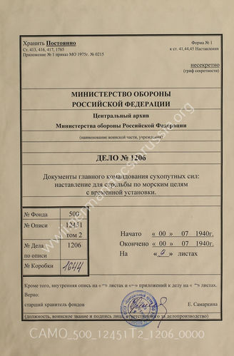 Top CAMO - Bestand 500 Findbuch 12451, Bd. 2 - Oberkommando des Heeres (OKH), 1919-1945 Akte 1206: Unterlagen des Generals der Artillerie beim Generalstab ...