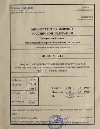 Akte 1243: D 50/4 – Kennblätter fremden Geräts, hrsg. vom OKH, Heft 4, Leichte Geschütze, vom 1. Februar 1940, Berlin 1940
