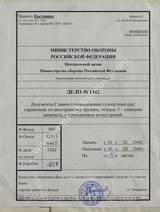 Akte 1342: D 50/3 – Kennblätter fremden Geräts, hrsg. vom OKH, Heft 3: Werfer, vom 1. Februar 1940, Berlin 1940