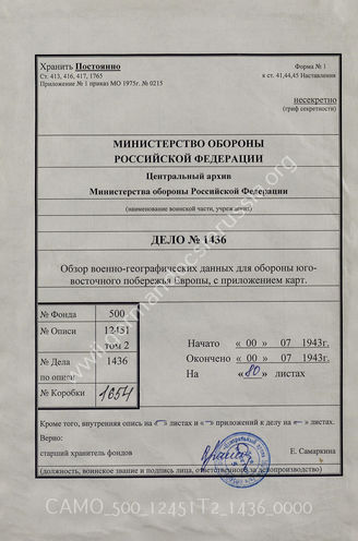 Akte 1436: Unterlagen der Abteilung für Kriegskarten und Vermessungswesen (IV. Mil.-Geo.) im Generalstab des Heeres im OKH: Überblick der militärgeographischen Bedingungen für die Verteidigung der Küsten Südost-Europas, Berlin 1943