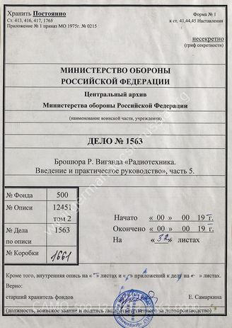 Top CAMO - Bestand 500 Findbuch 12451, Bd. 2 - Oberkommando des Heeres (OKH), 1919-1945 Akte 1563: Wigand, Rolf: Rundfunktechnik: Einführung und praktische...