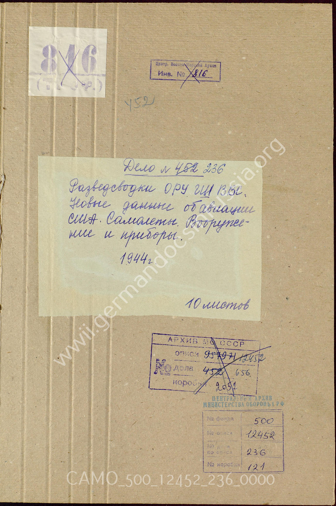 Top CAMO - Bestand 500 Findbuch 12452 - Oberkommando der Luftwaffe (OKL) Akte 236. Nachrichten des Dienstes Fremde Luftwaffen West des Führu...