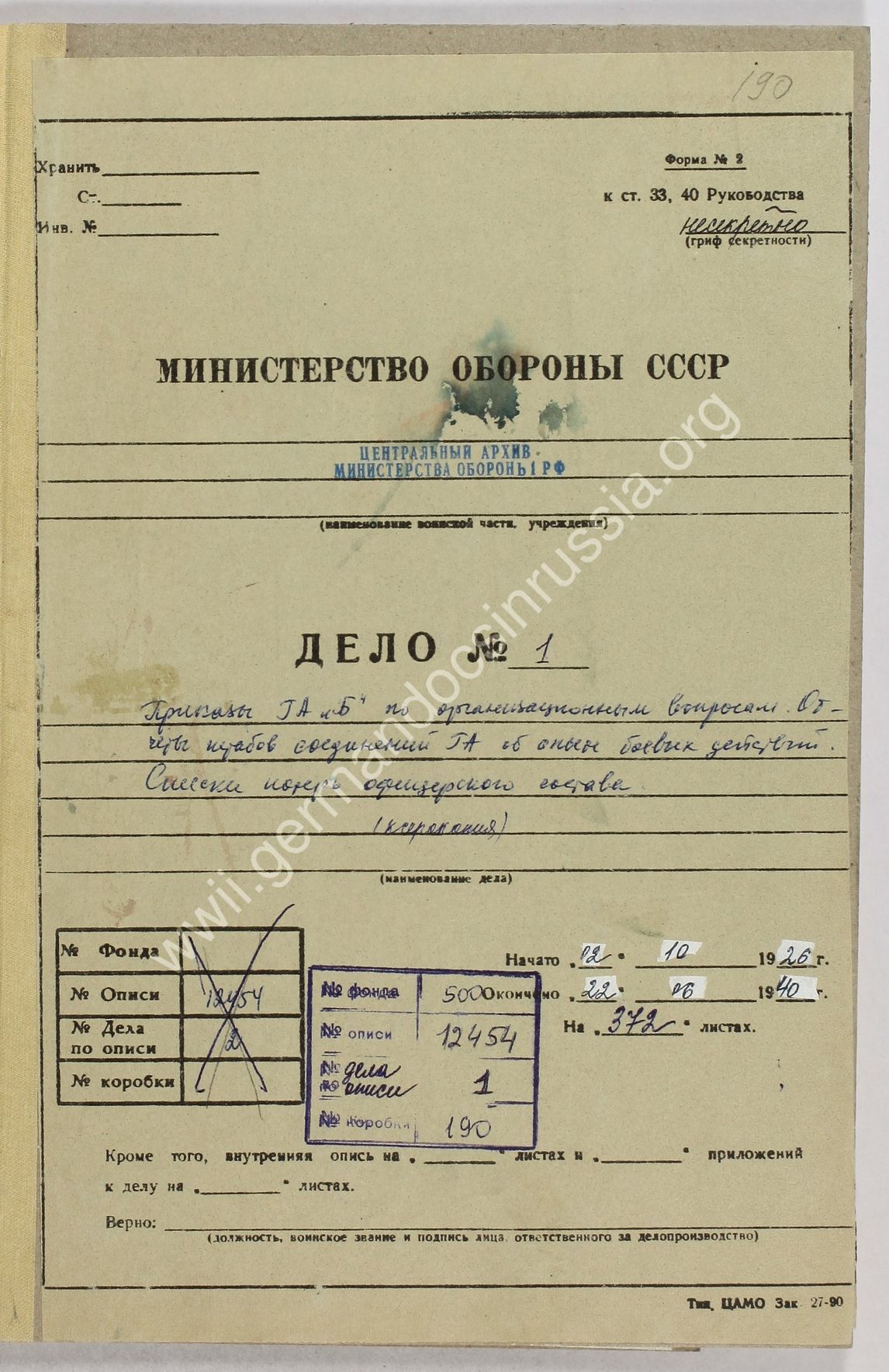 Top CAMO - Bestand 500 Findbuch 12454 - Heeresgruppe B/Mitte Akte 1. Befehle des Heeres-Gruppenkommandos 1 und der Heeresgruppe...