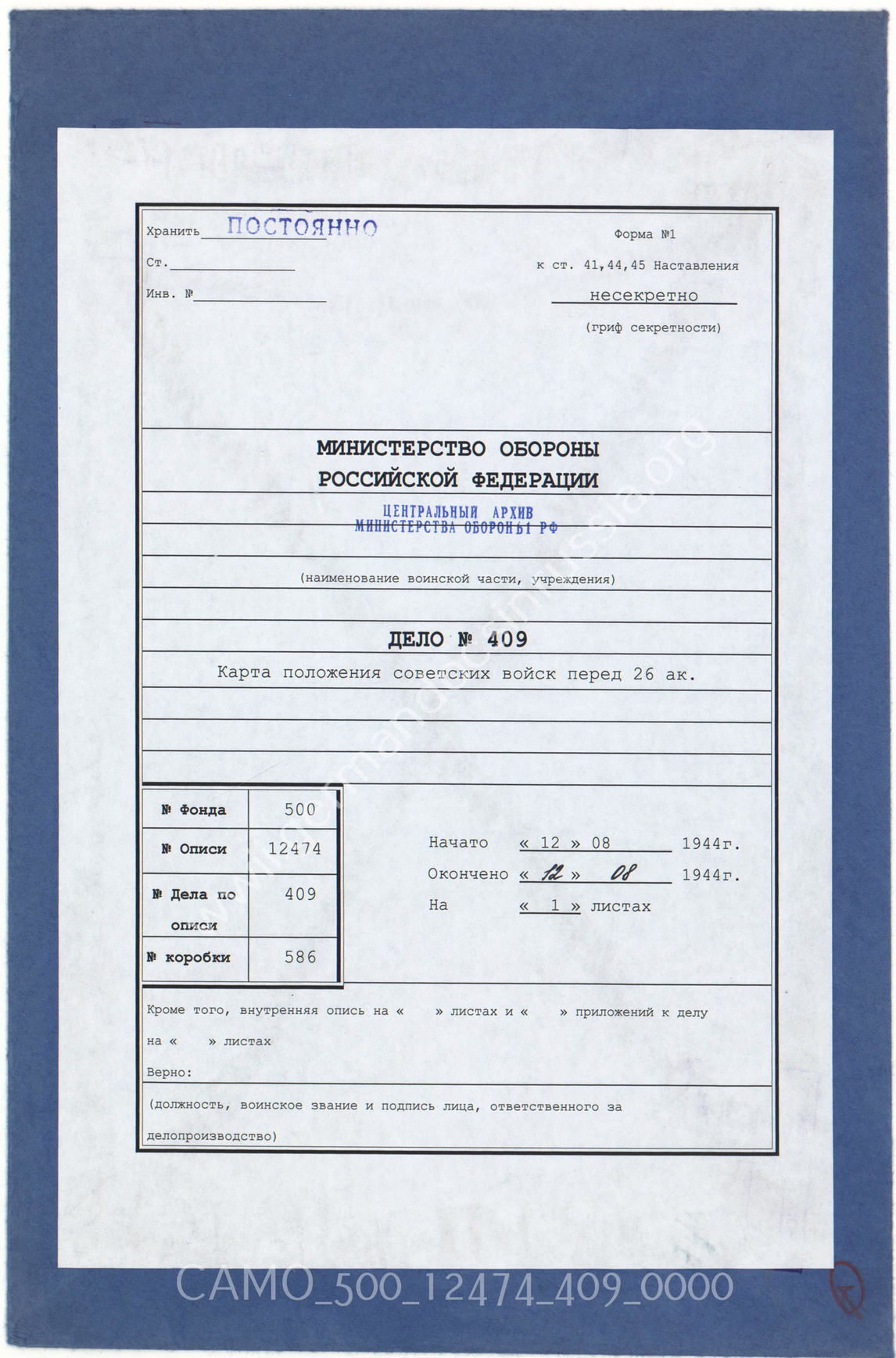 Top CAMO - Bestand 500 Findbuch 12474 - Armeekorps Akte 409. Unterlagen der Ic-Abteilung des Generalkommandos des XXVI...