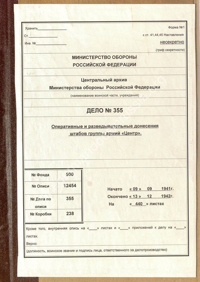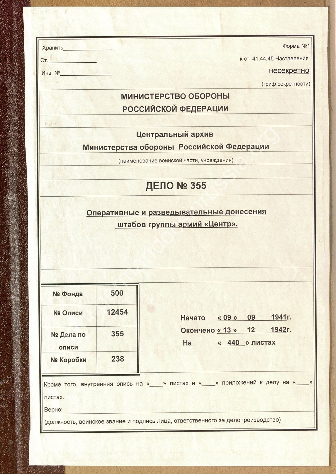 Top CAMO - Bestand 500 Findbuch 12454 - Heeresgruppe B/Mitte Akte 355. Unterlagen des Ic der Heeresgruppe Mitte: Befehle, Fernsc...