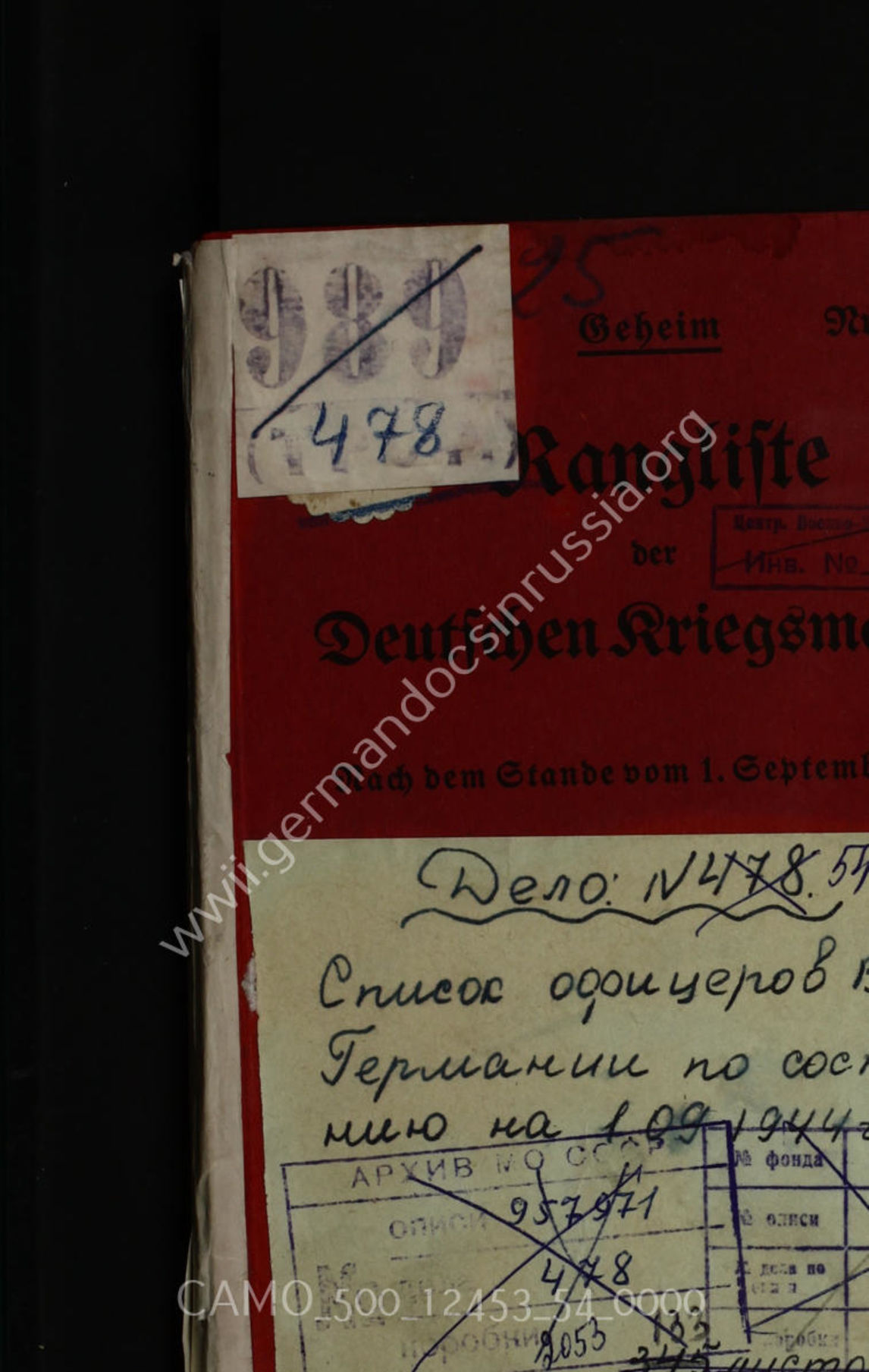 Top CAMO - Bestand 500 Findbuch 12453 - Oberkommando der Kriegsmarine (OKM) Akte 54. Rangliste der deutschen Kriegsmarine nach dem Stand vom 1....