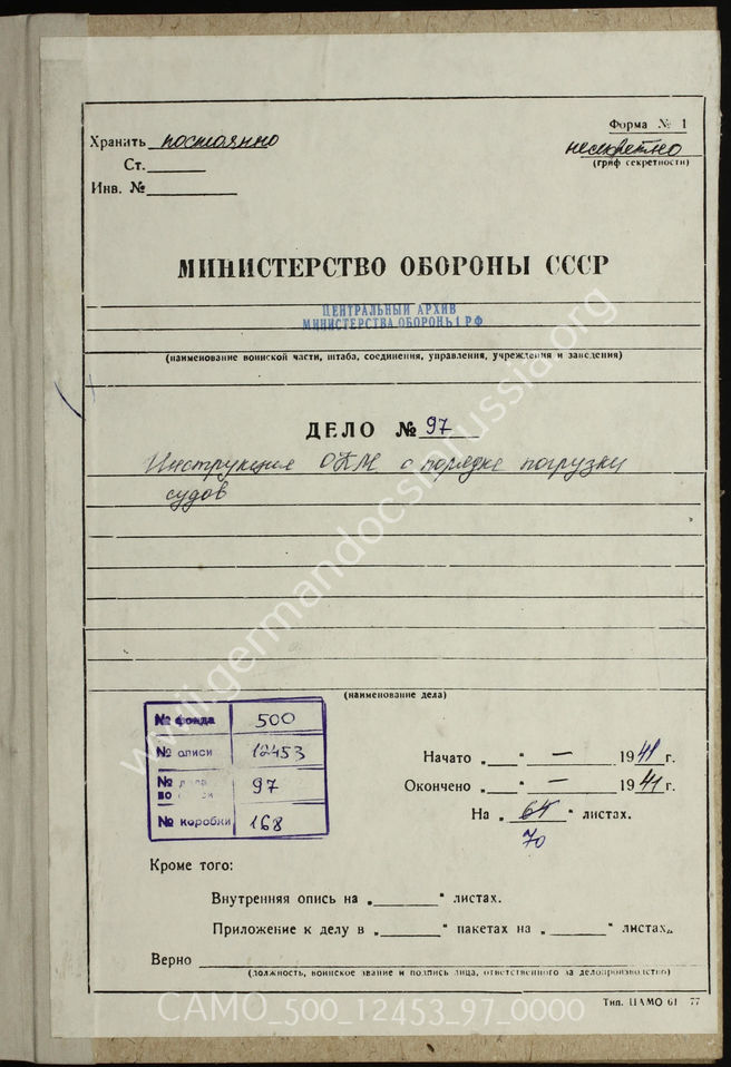 Akte 97. Das Merkblatt des OKM “Verladung für Seetransport”, 1941.
