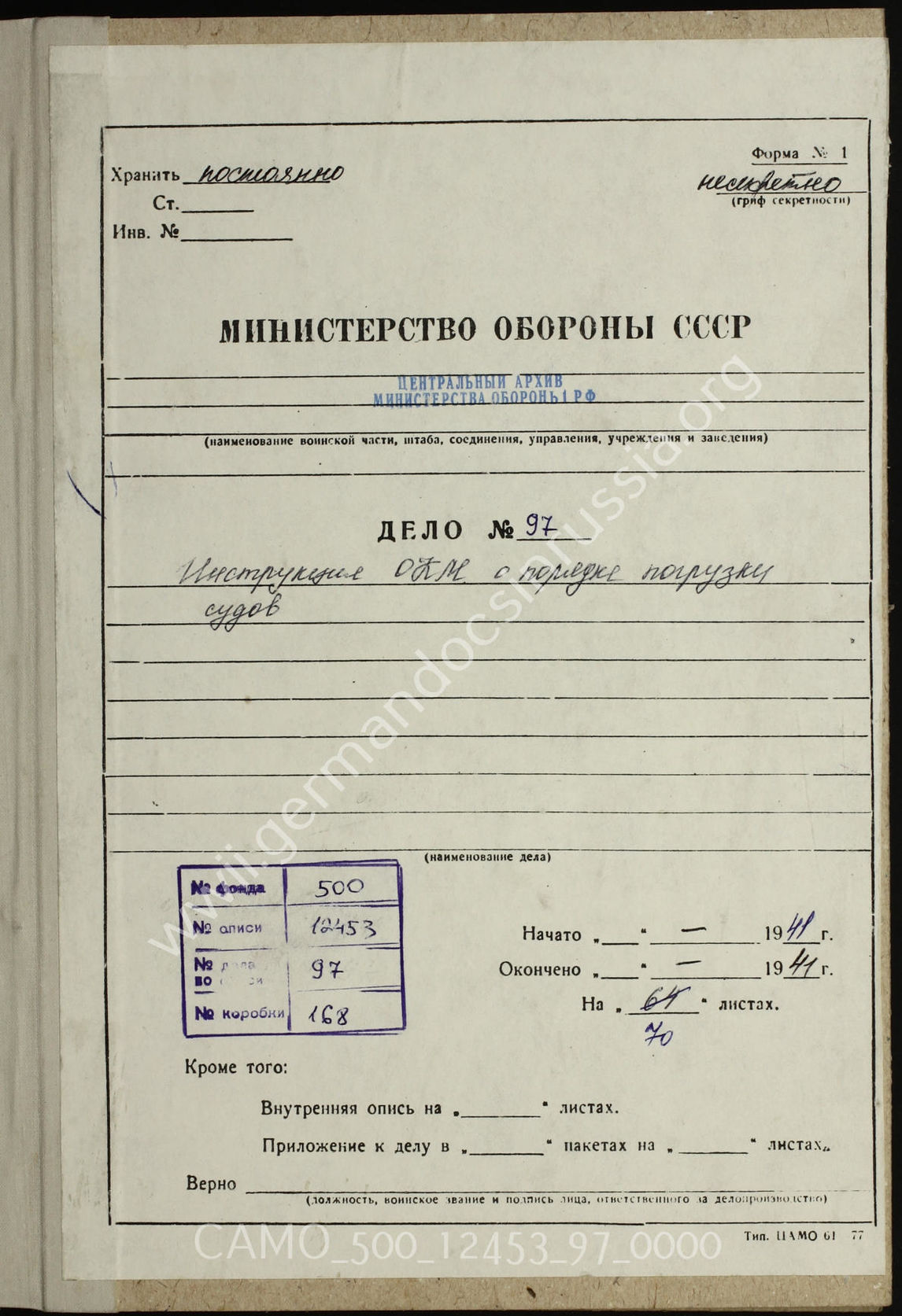 Top CAMO - Bestand 500 Findbuch 12453 - Oberkommando der Kriegsmarine (OKM) Akte 97. Das Merkblatt des OKM “Verladung für Seetransport”, 1941.