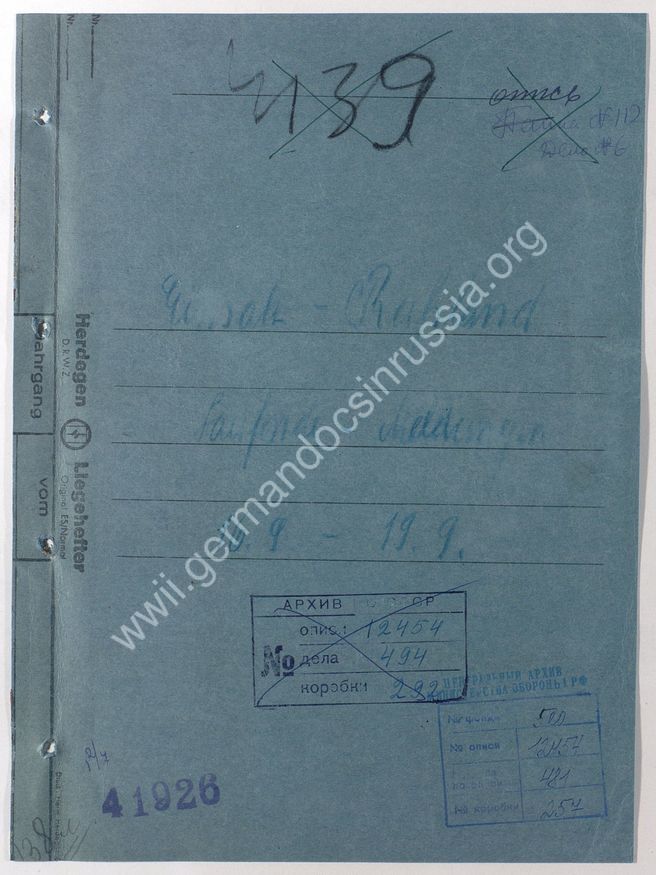 Akte 481. Unterlagen des Ic der Heeresgruppe Mitte: laufende Meldungen (16.9.-19.9.1942)