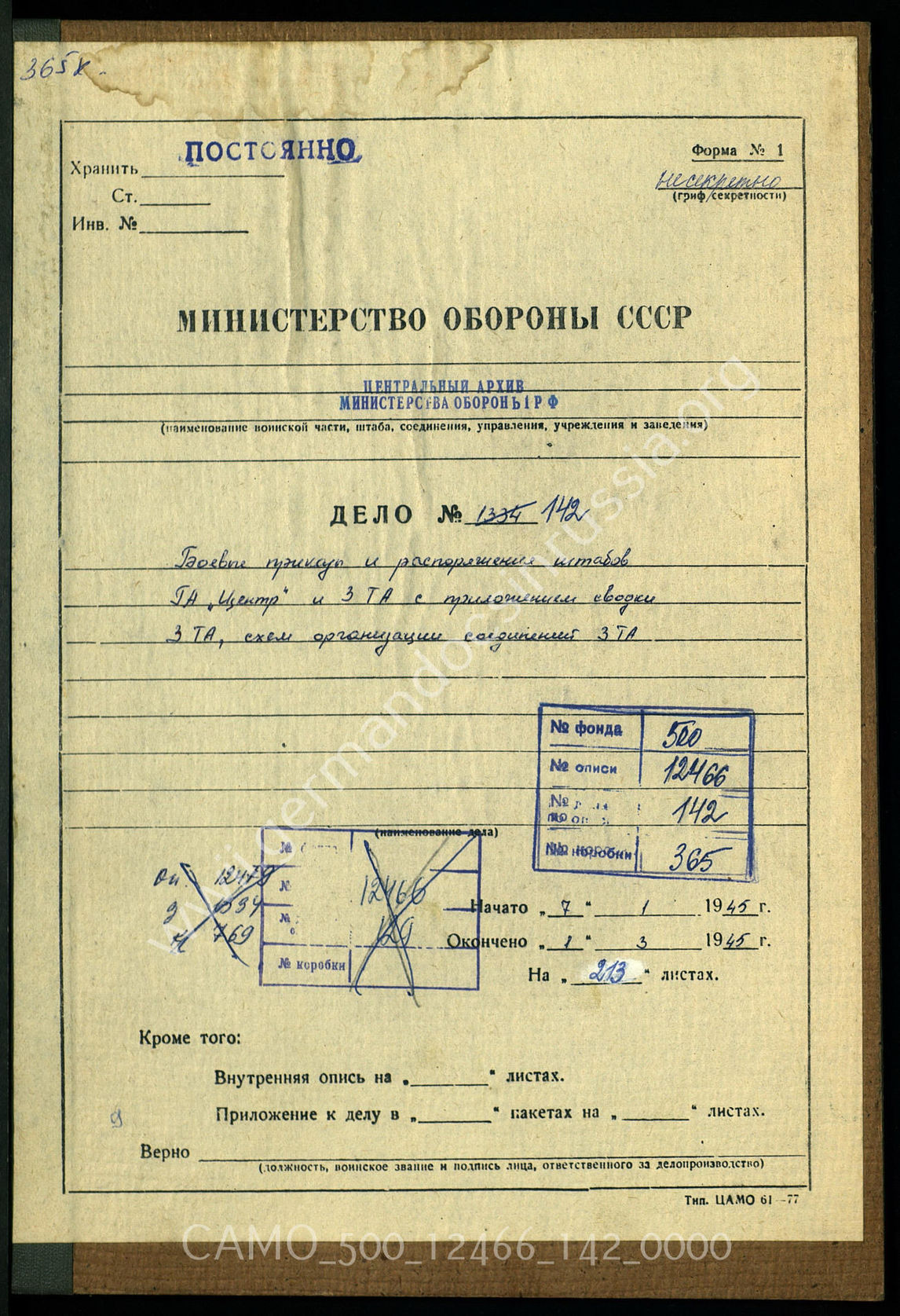 Top CAMO - Bestand 500 Findbuch 12466 - Panzerarmeen Akte 142. Unterlagen der Ia-Abteilung des PzAOK 3: Anlagen zum KTB ...