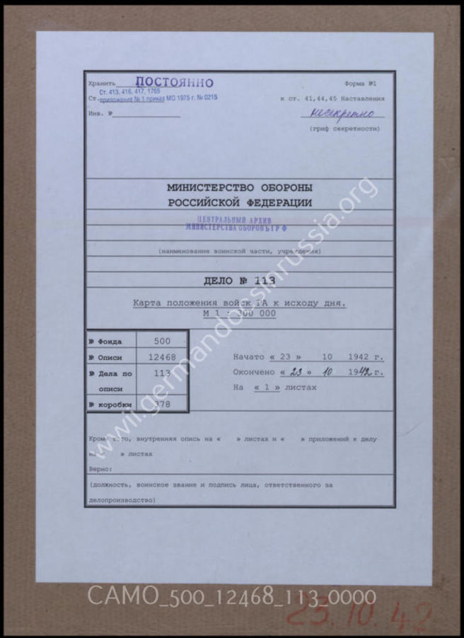 Akte 113: Unterlagen der Operationsabteilung IIIb des Generalstabes des Heeres beim OKH: Karte zur Lage der Heeresgruppe B an der deutsch-sowjetischen Front, einschließlich Zusammenstellung der Panzerlage – Stand 23. Oktober 1942, M 1:300.000
