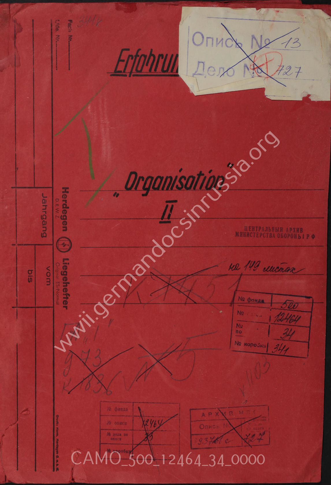 Top CAMO - Bestand 500 Findbuch 12464 - Heeresgruppen Nr. 1-6 Akte 34. Erfahrungsberichte des Heeresgruppenkommandos 1, der Gener...
