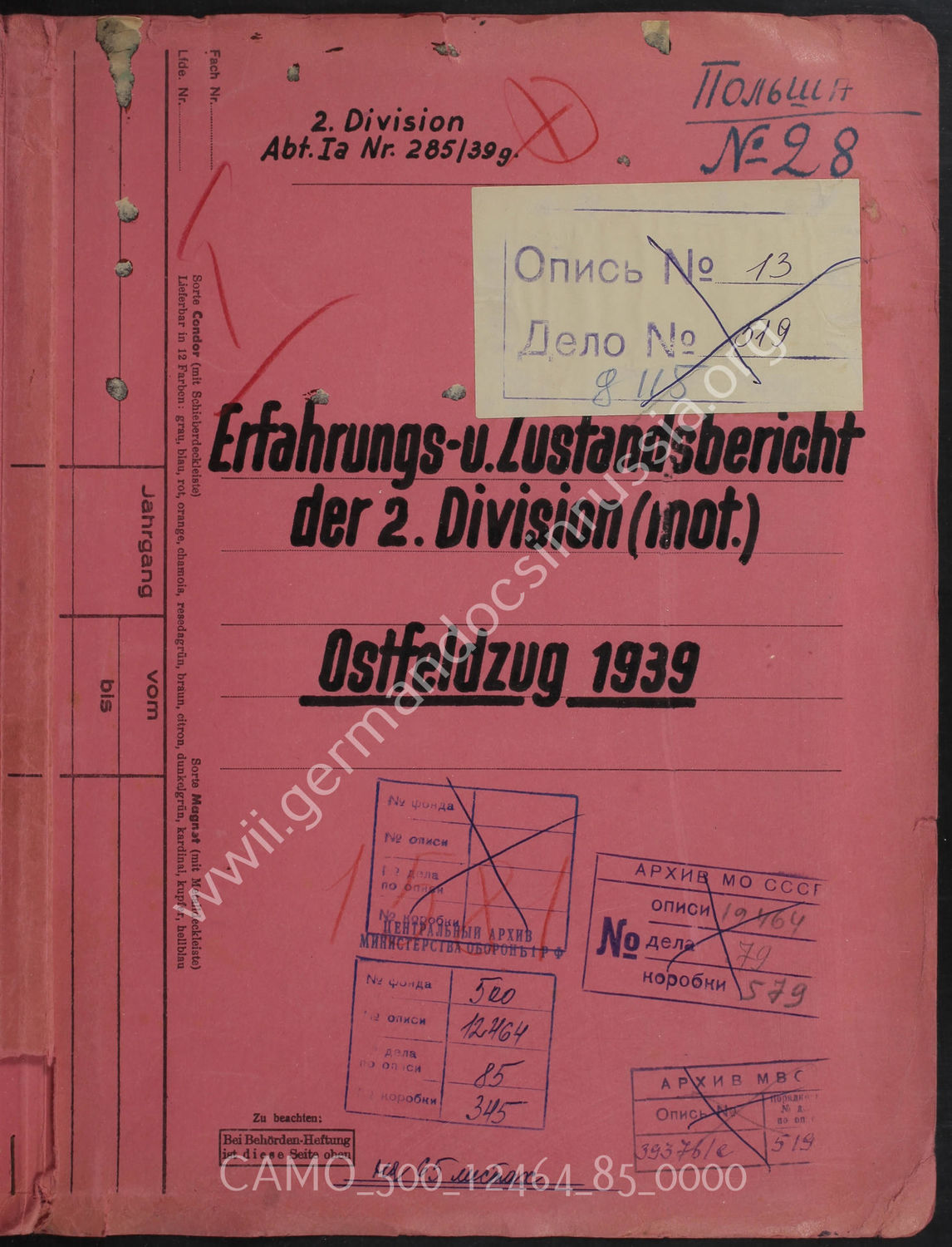 Akte 85. Erfahrungs- und Zustandsbericht der 2. Infanterie-Division (motorisiert).