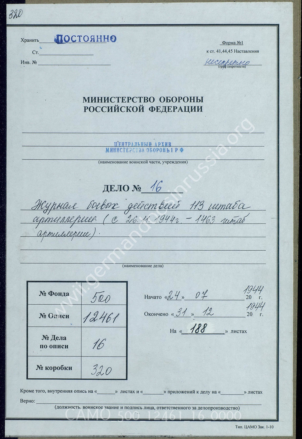 Top CAMO - Bestand 500 Findbuch 12461 - Artillerie-Kommandeure Akte 16. Unterlagen des Artillerie-Kommandeurs 113 (Arko 113) – ab ...