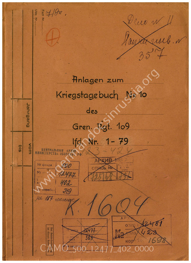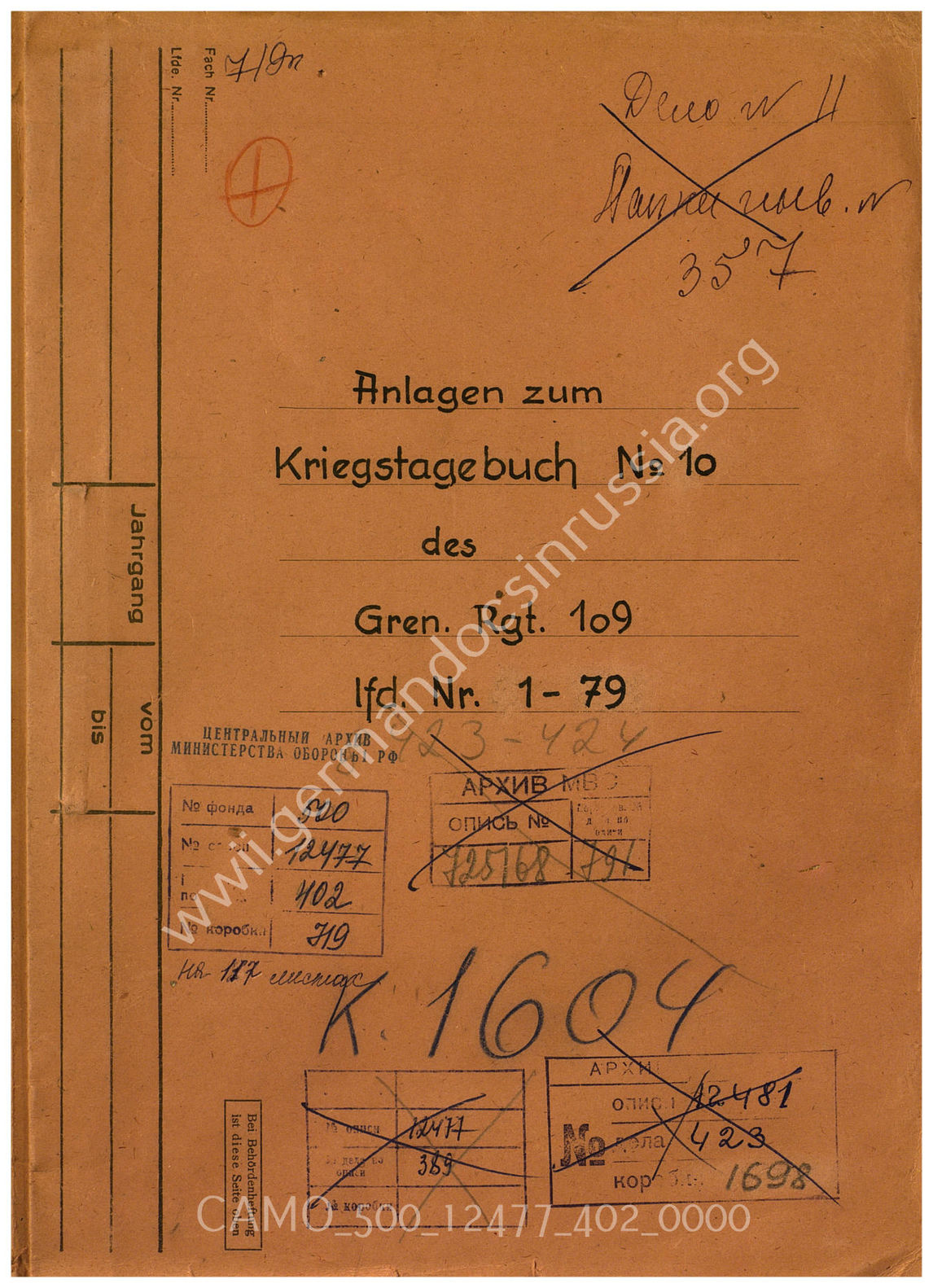 Top CAMO - Bestand 500 Findbuch 12477 - Infanterie- und Sicherungsdivisionen der Wehrmacht... Akte 402. Unterlagen der Ia-Abteilung des Grenadierregiments 109 de...