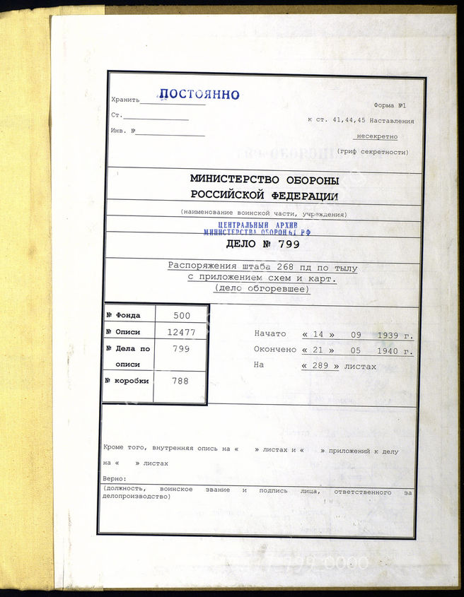 Top CAMO - Bestand 500 Findbuch 12477 - Infanterie- und Sicherungsdivisionen der Wehrmacht... Akte 799. Unterlagen der Ia-Abteilung der 268. Infanteriedivision: ...