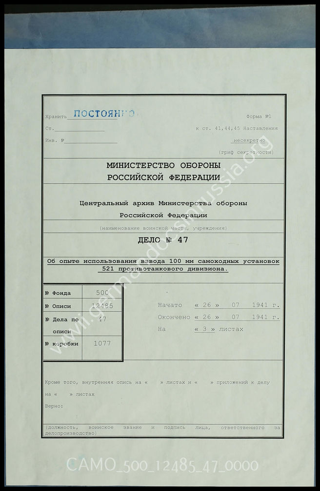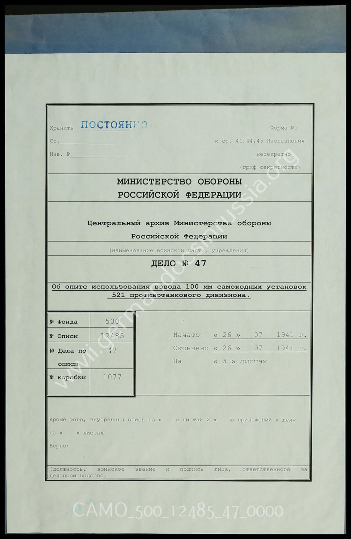 Top CAMO - Bestand 500 Findbuch 12485 - Artillerie-, Beobachter-, Panzerjäger- und Flakabt... Akte 47. Unterlagen der Ia-Abteilung der Panzerjägerabteilung 521 (...