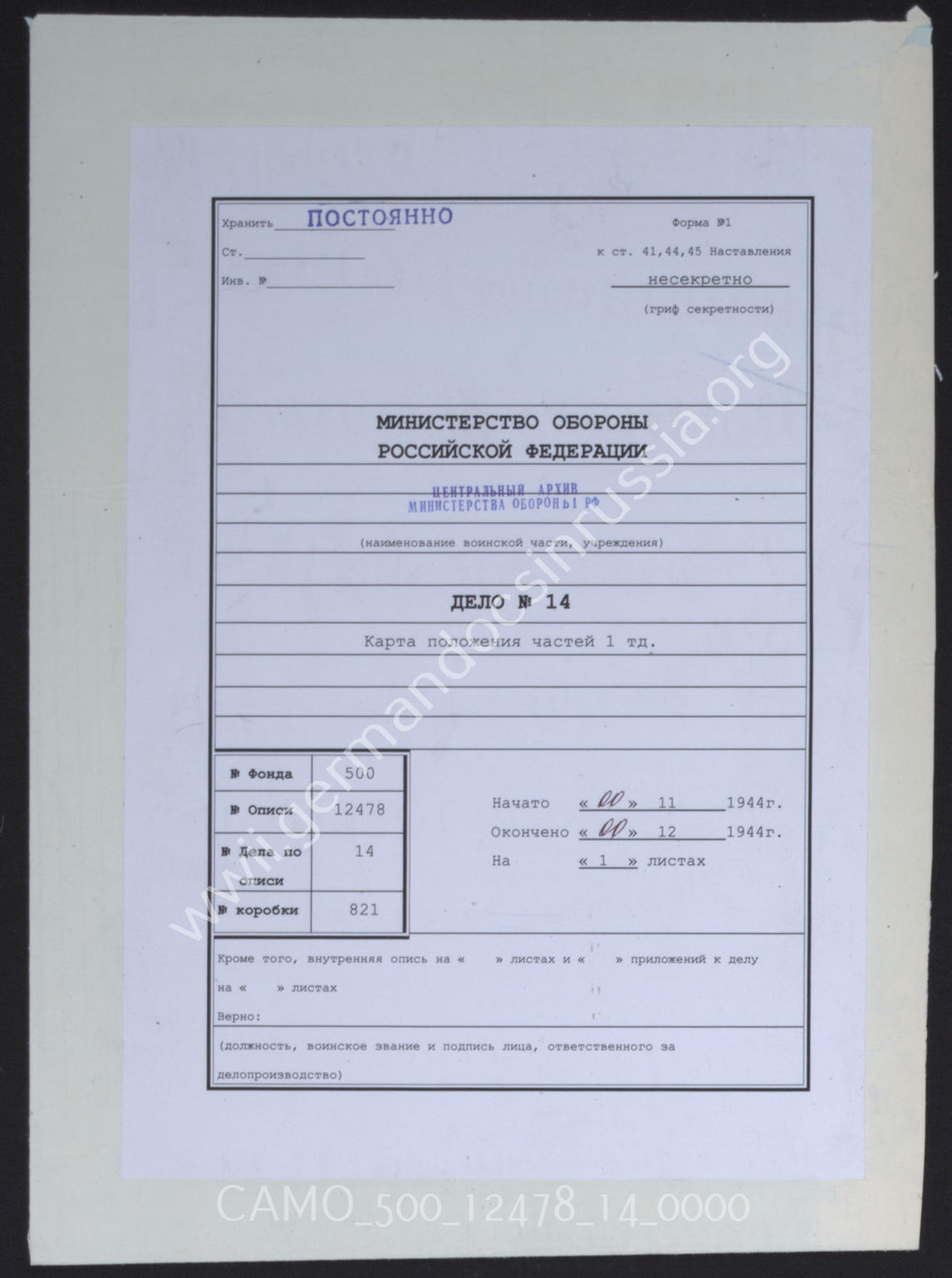 Top CAMO - Bestand 500 Findbuch 12478 - Panzerdivisionen Akte 14. Unterlagen der Ia-Abteilung der 1. Panzerdivision: Karte ...