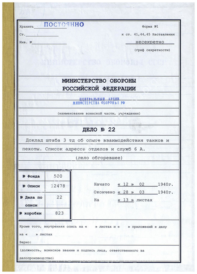 Top CAMO - Bestand 500 Findbuch 12478 - Panzerdivisionen Akte 22. Unterlagen der Ia-Abteilung der 3. Panzerdivision: Fernsp...