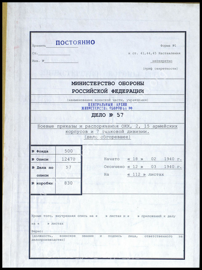 Top CAMO - Bestand 500 Findbuch 12478 - Panzerdivisionen Akte 57. Unterlagen der Ia-Abteilung der 7. Panzerdivision: Schrif...
