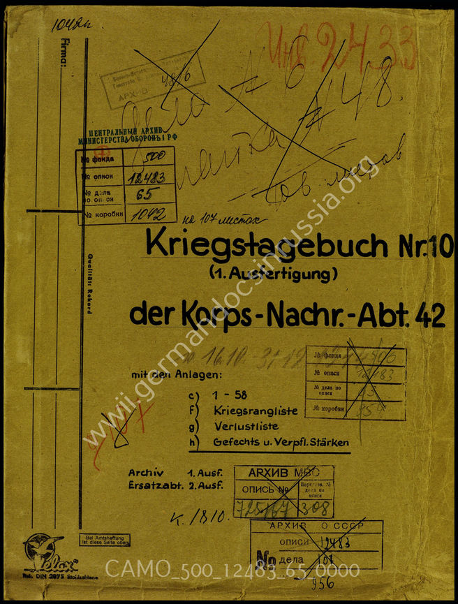 Top CAMO - Bestand 500 Findbuch 12483 - Bataillone Akte 65. Unterlagen der Ia-Abteilung der Korps-Nachrichtenabteilung...