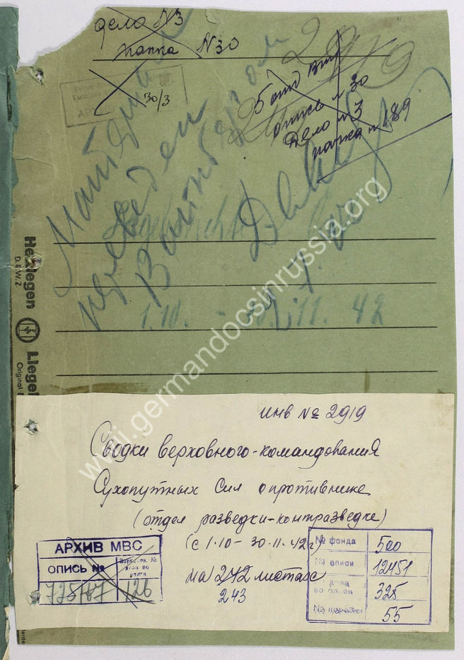 Дело 325. Сводки Генштаба ОКХ о положении на советско-германском фронте.