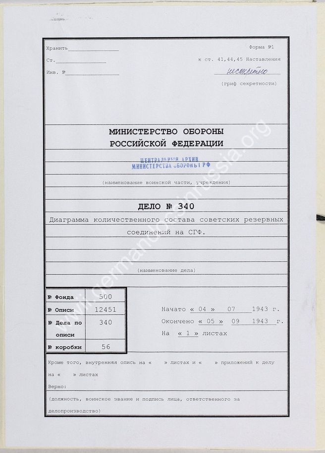 Дело 340. Диаграмма количественного состава советских резервных соединений на советско-германско...