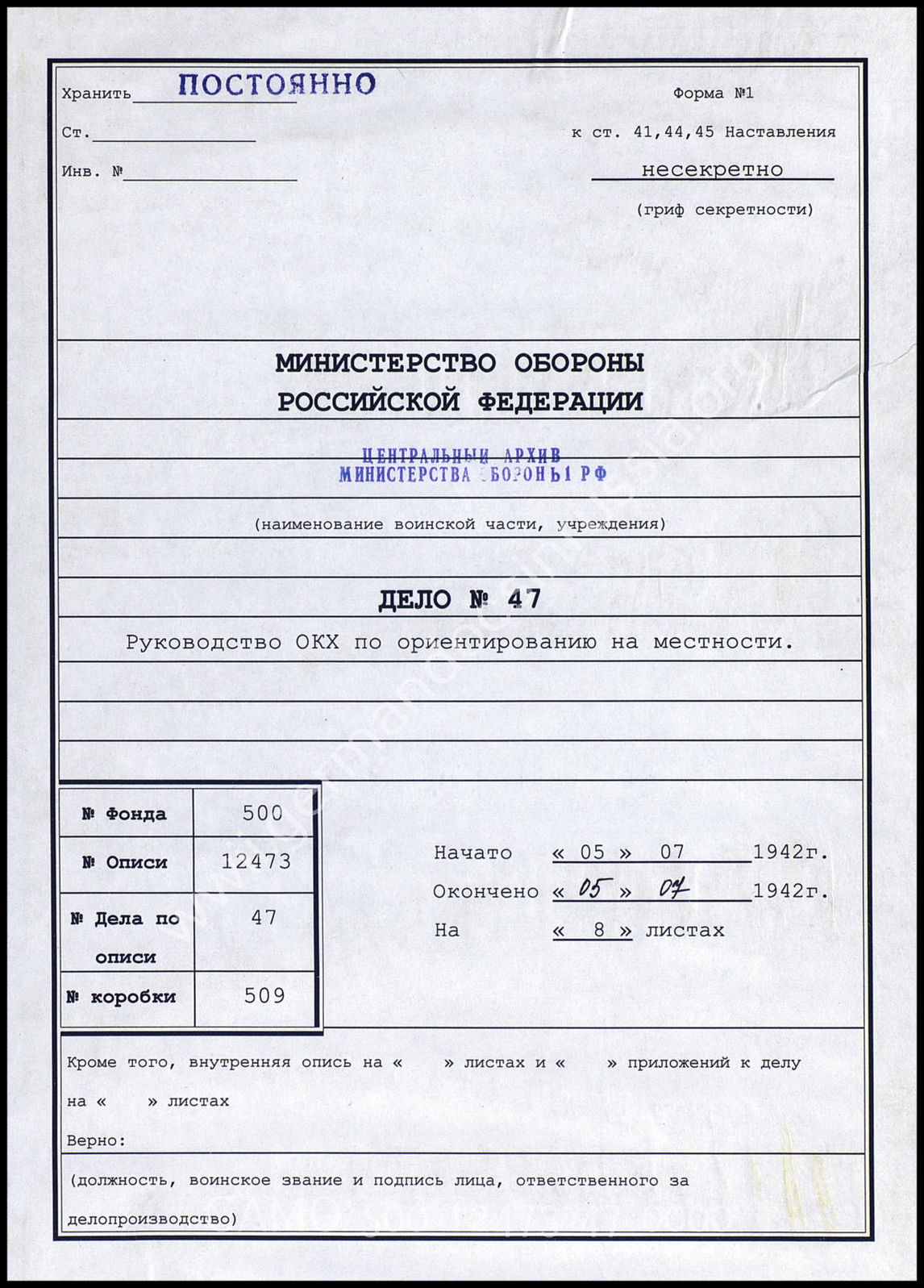 Дело 47. Документы оперативного отдела 106-й пехотной дивизии: сообщение Главного командования сухопутных сил об опыте боев для ориентирования на местности и соответствующие распоряжения по боевой подготовке.