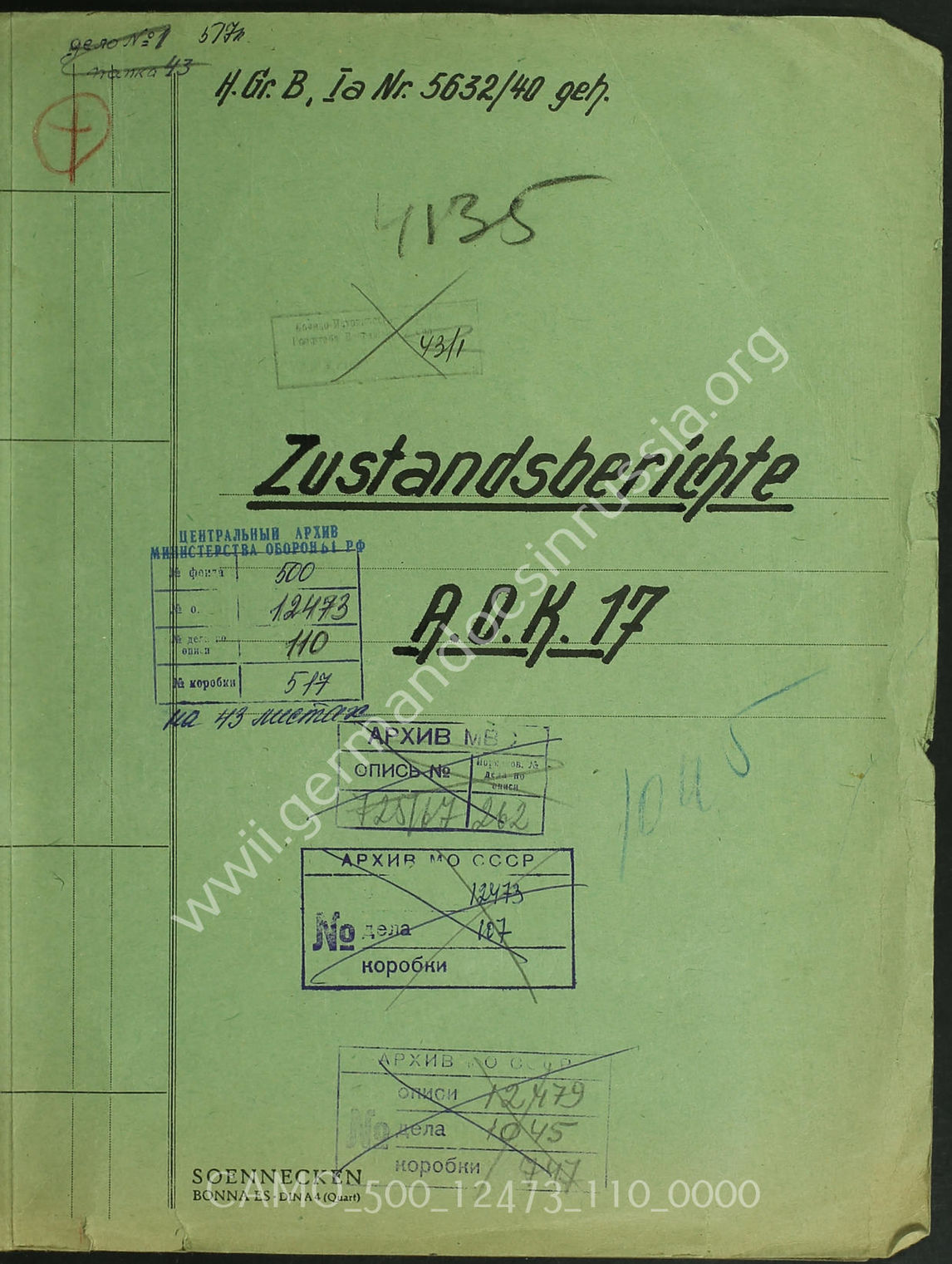 Дело 110. Документы оперативного отдела группы армий «Б»: сводки о наличном численном составе соединений и частей 17-й армии.