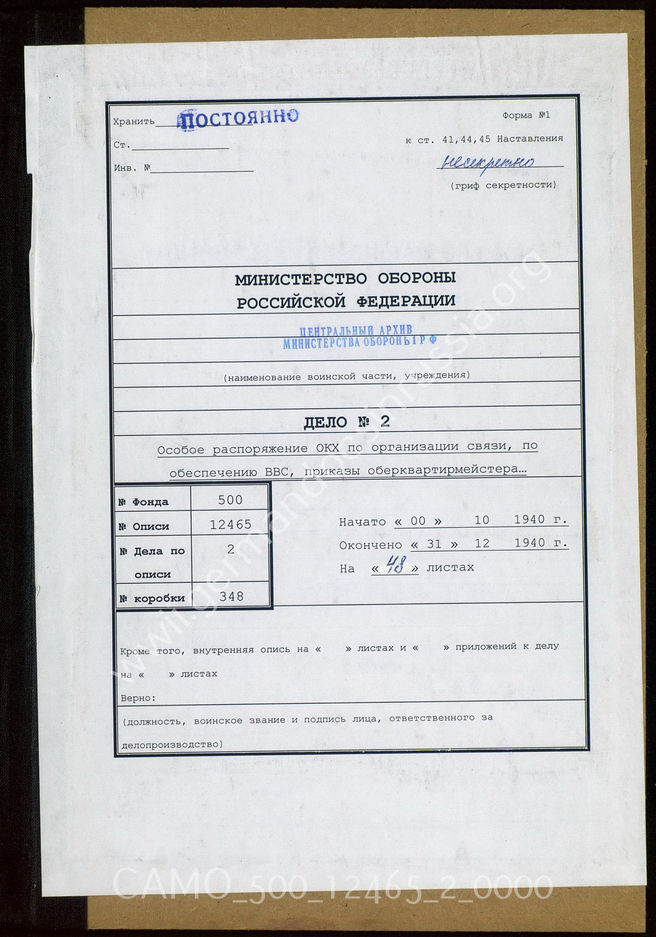 Top Фонд 500 Опись 12465 - Группа армий "Д" Дело 2. Документы отдела тыла/оберквартирмейстера при Главнокоманду...