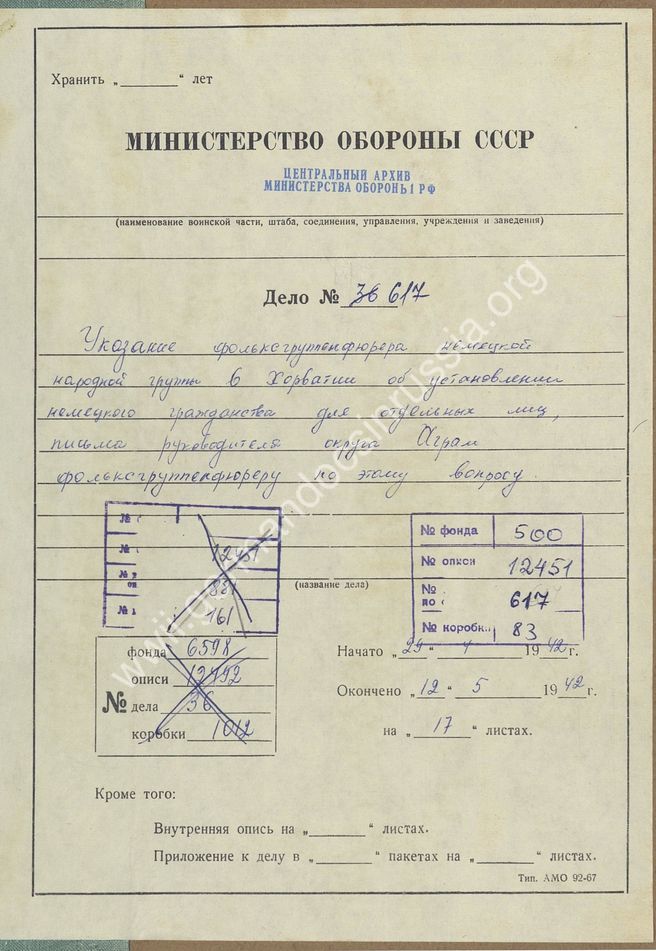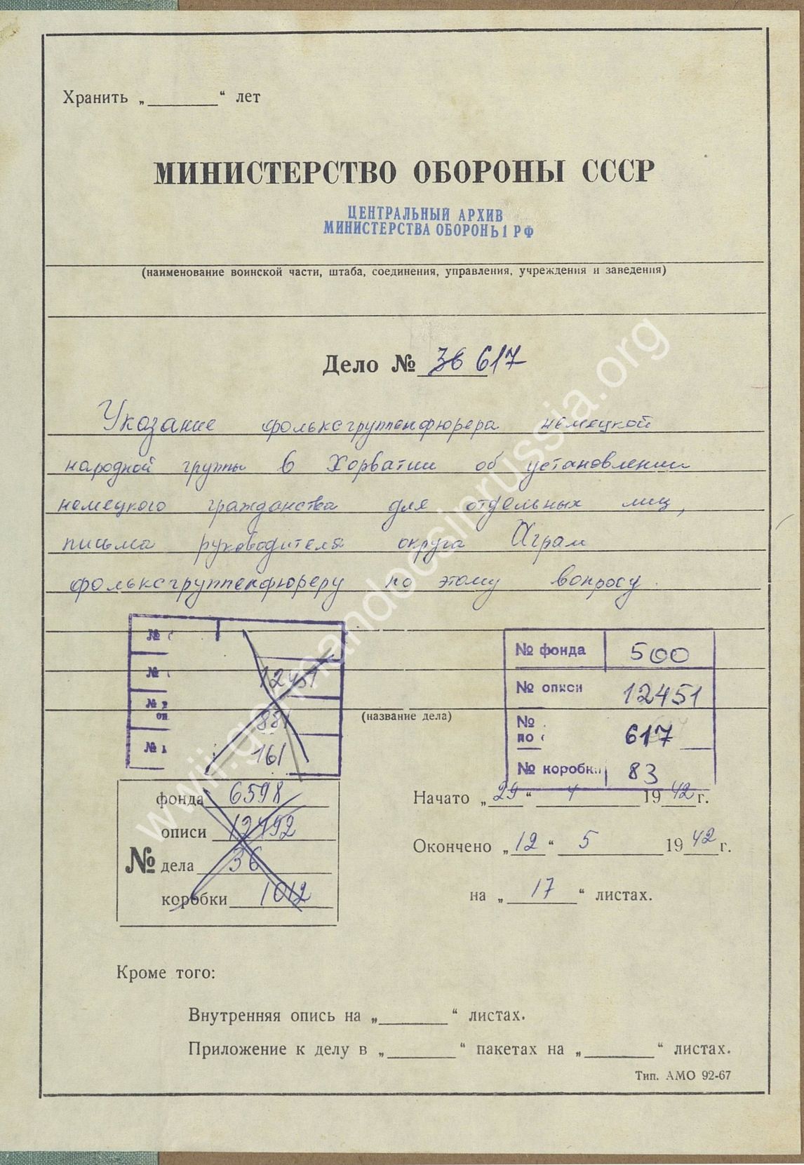 Дело 617. Распоряжения уполномоченного фюрера немецкой народной группы в Хорватии об установлени...
