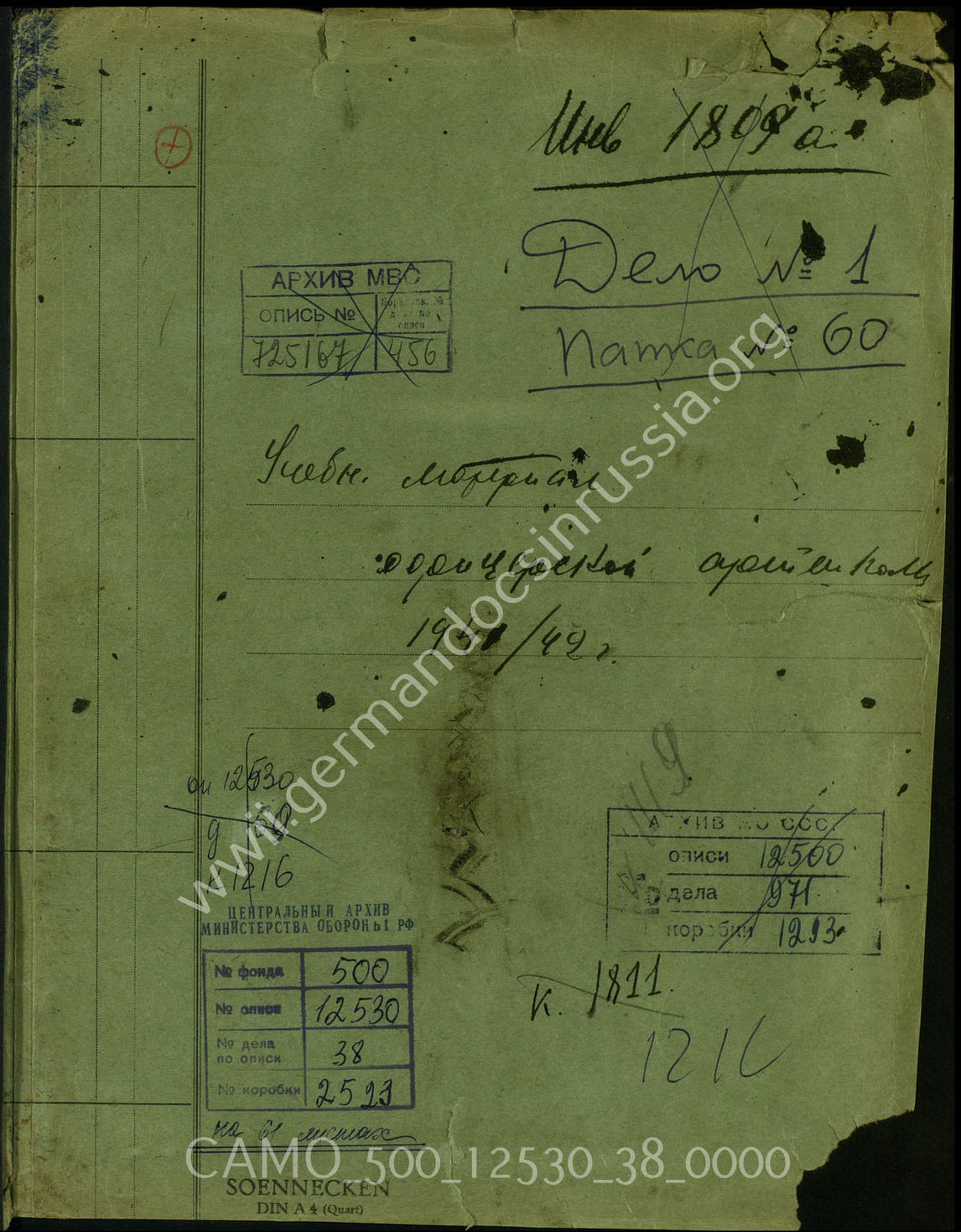 Дело 38. Документы 2-го артиллерийского училища в Ютербоге: материал учебного штаба для офицерских стрелковых курсов – организация учебных документов, материал для использования наблюдателями и проч.