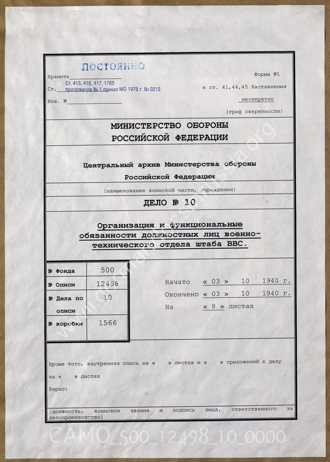 Top Фонд 500 Опись 12498 - Обзорные сведения по организационной структуре вермахта Дело 10. Документы начальника технического управления министерства ...