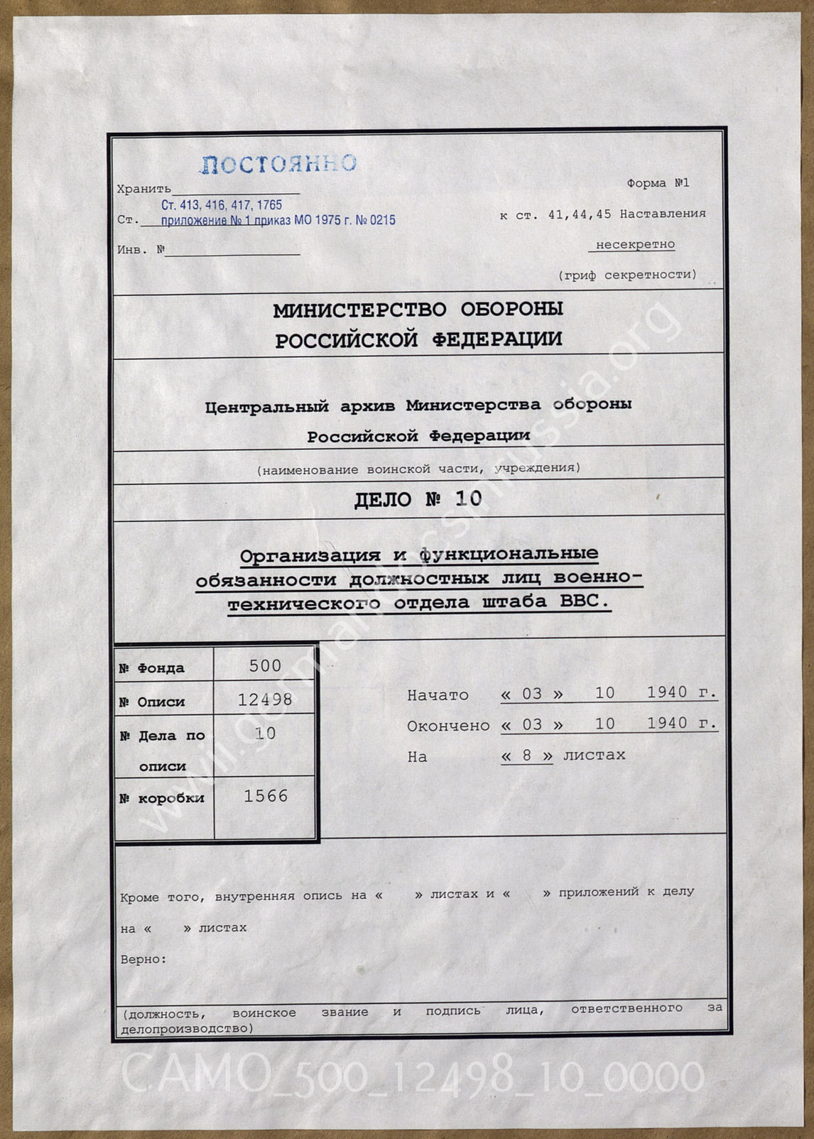 Дело 10. Документы начальника технического управления министерства авиации: приказ № 333 начальника технического управления министерства авиации о распределении служебных обязанностей.