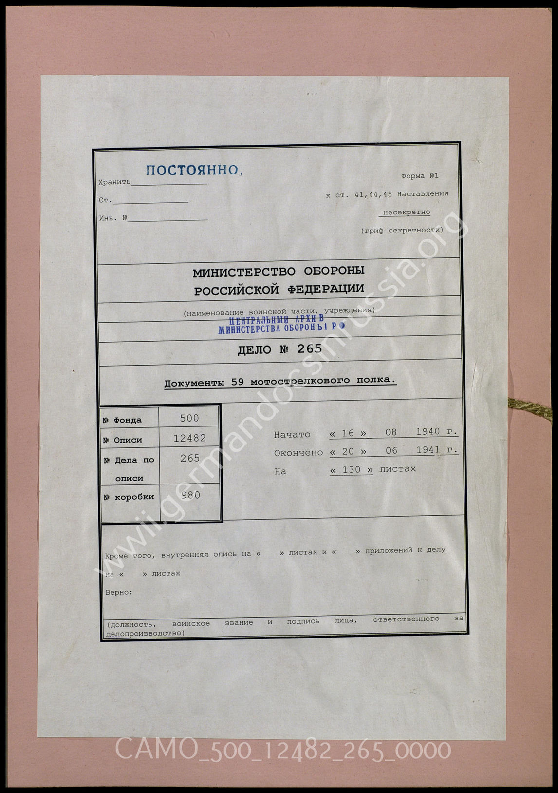 Top Фонд 500 Опись 12482 - Полки вермахта Дело 265. Документы оперативного отделения 59-го пехотного полка: ...