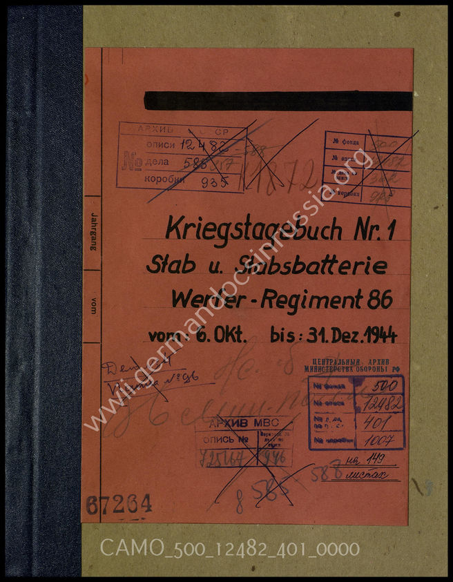 Top Фонд 500 Опись 12482 - Полки вермахта Дело 401. Документы оперативного отдела штаба и штабной батареи 86-...