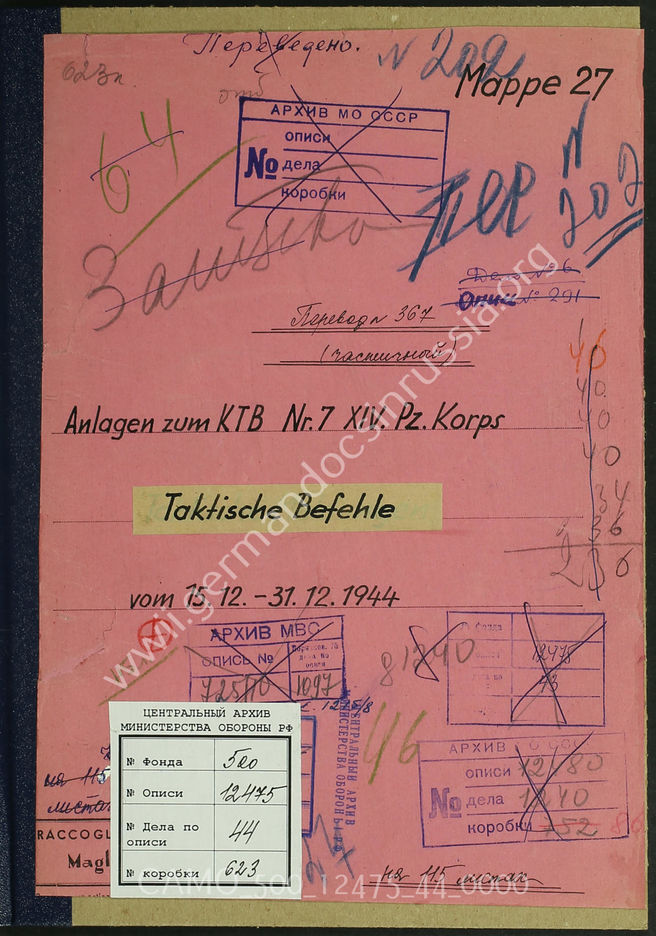 Top Фонд 500 Опись 12475 - Танковые корпуса Дело 44. Документы оперативного отдела командования 14-го танковог...