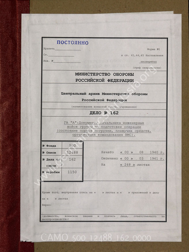 Top Фонд 500 Опись 12488 - Документы по операции "Морской лев" Дело 162: Документация генерала инженерных войск группы армий А: о...